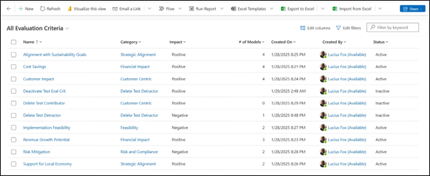 - Created On: When the Evaluation Criteria was created.