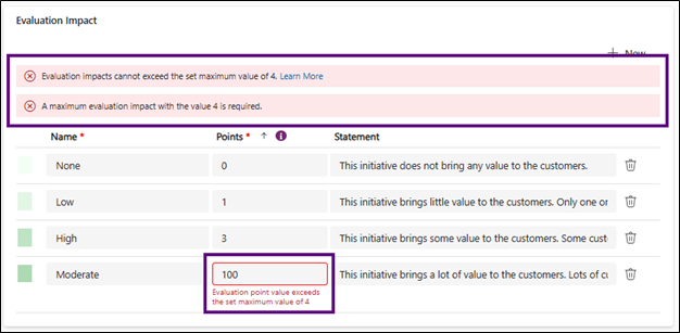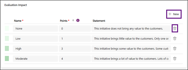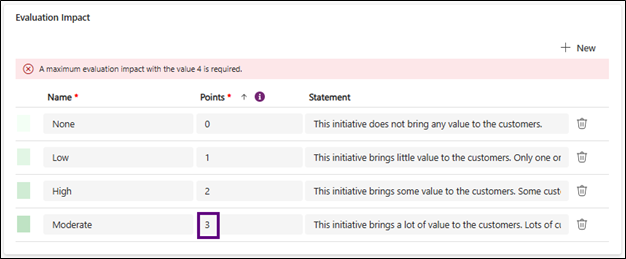 - Statement (optional): This is where you can provide additional details so that users know what Impact to select in the initiative’s Evaluation tab.