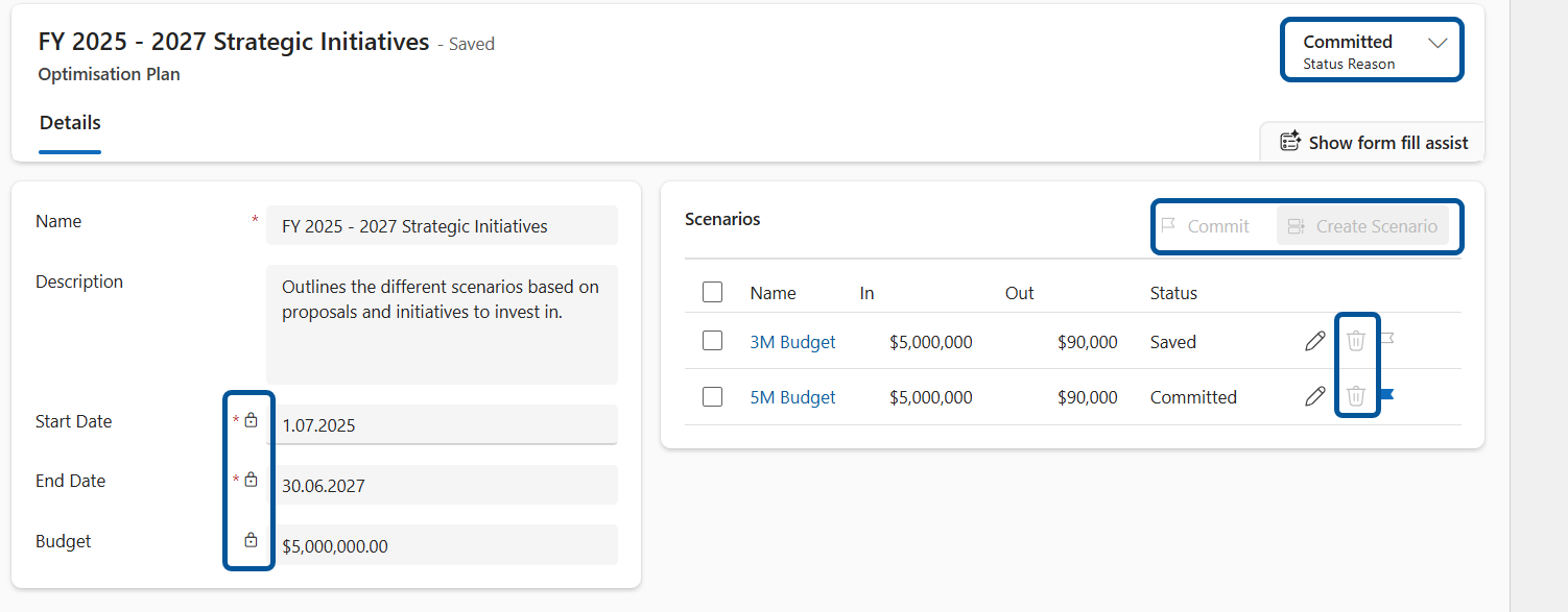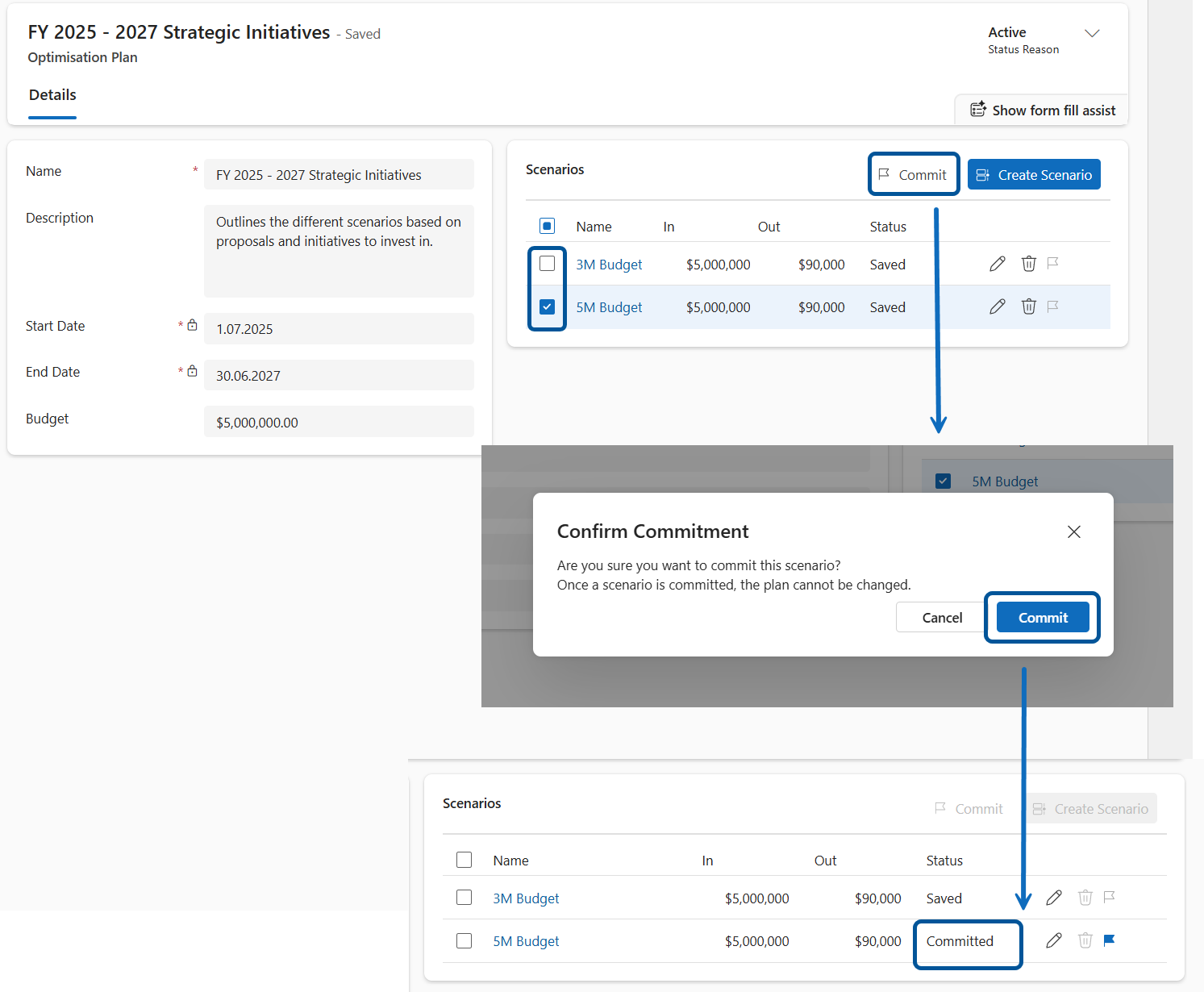 - Once committed, the scenario’s status will change to Committed and the Optimisation Plan will be locked so no further edits can be made.
