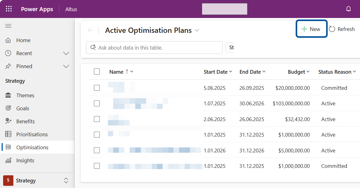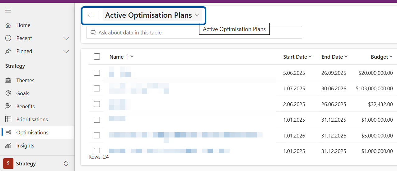 Either in conjunction with or separately from the built-in Prioritisation feature, your organisation can use this Strategic Optimisation capability in Altus to: